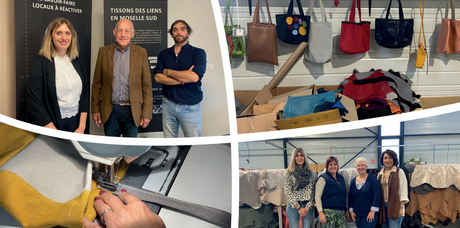 Retour à la listeComment valoriser des chutes de production textile en local, dans une logique d’économie circulaire et en renforçant la solidarité ? Le projet Sarrevie voit ainsi le jour pour redonner vie aux chutes de cuir et de tissu du territoire Sarrebourg Moselle Sud. Les chutes sont collectées et transformées en articles personnalisables ou en goodies par des apprenties couturières salariées de la structure d’insertion par l’activité économique «Entraide Emploi», en collaboration avec « la Fabrique du Lab » du collège de Hartzviller.